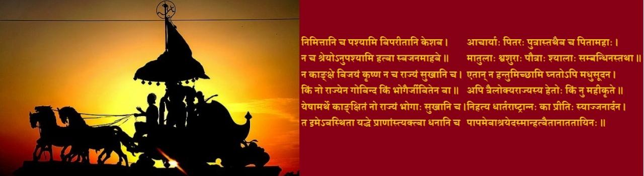 We, the Gita students, can take this verse as an opportunity for us to verify whether Sañjaya has been correct in his understanding of Arjuna’s thoughts and feelings. Arjuna himself mentions all the relations in plurals as Sañjaya has done earlier! Further, Arjuna’s words make it explicit that he covers his relatives or family men in the end separately by using another word sambandhinaḥ (सम्बन्धिनः). The tone of the verse implies the family men are just a subset of the svajanaḥ he visualizes in the entire crowd on the battlefield. We have, thus, convincing evidence that the many relations he mentions in plurals do represent the rest of the two armies and not his family men.
